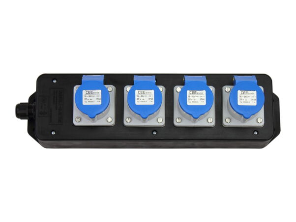 Bestückung:4 CEE-Steckdosen 16A 230V 3p 6h IP 44Kabelverschraubung M20, für dreipoligen Anschluss(Ohne Zuleitung)