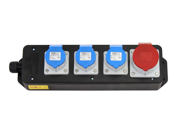 Bestückung:1 CEE-Steckdose 16A 400V 5p 6h IP 443 CEE-Steckdosen 16A 230V 3p 6h IP 44Kabelverschraubung M25(Ohne Zuleitung)